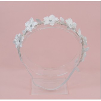 Χειροποίητη παιδική στέκα με λευκό λουλούδι από ύφασμα