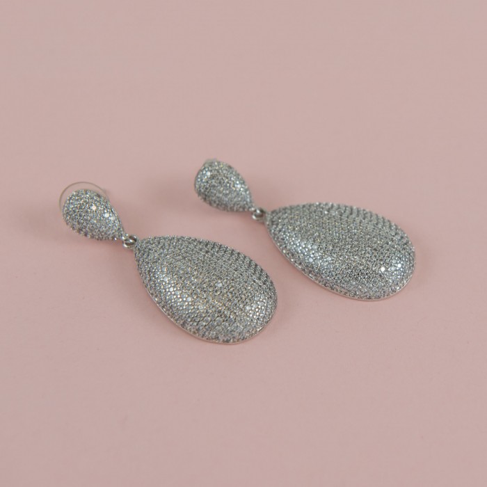 Νυφικά κρεμαστά εντυπωσιακά σκουλαρίκια επάργυρα με στρας