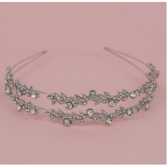 Νυφική κούαφ στεφάνι - στέκα με επάργυρο σύρμα πέρλες , κρύσταλλα και στρας