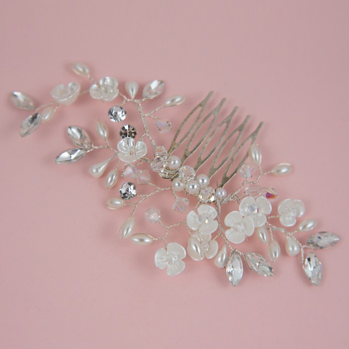 Νυφικό χτενάκι - κουάφ με κρύσταλλα , πέρλες και λουλούδια